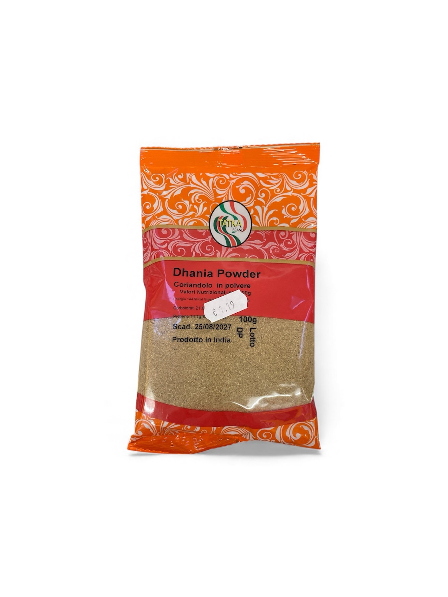 DHANIA POWDER(TATKA) Coriandolo in polvere • Valori Nutrizionali :- 1Unit is 100gDHANIA POWDER(TATKA) Coriandolo in polvere • Valori Nutrizionali :- 1Unit is 100g